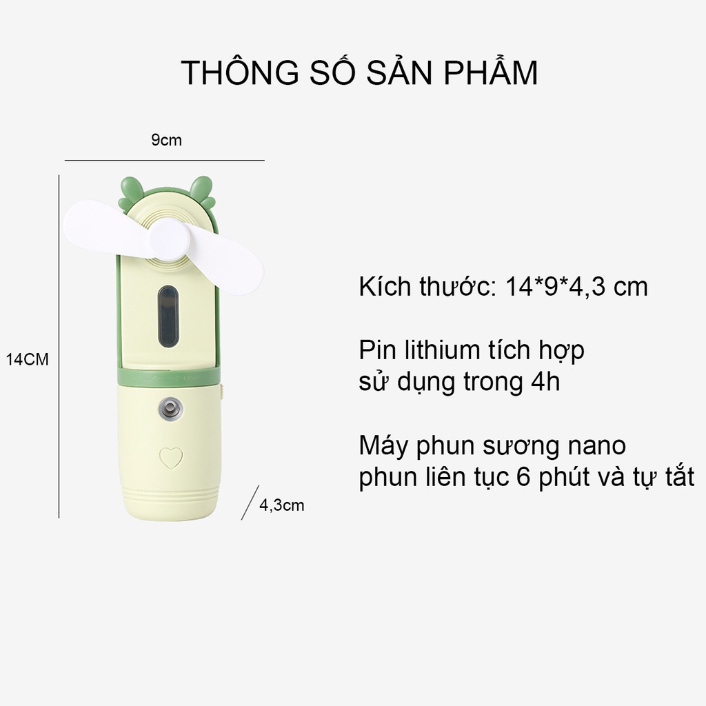 Giới thiệu Quạt Mini Phun Sương Nano Tạo Độ Ẩm, Quạt Mini Cầm Tay Cổng Sạc USB Tích Điện Tiện Dụng