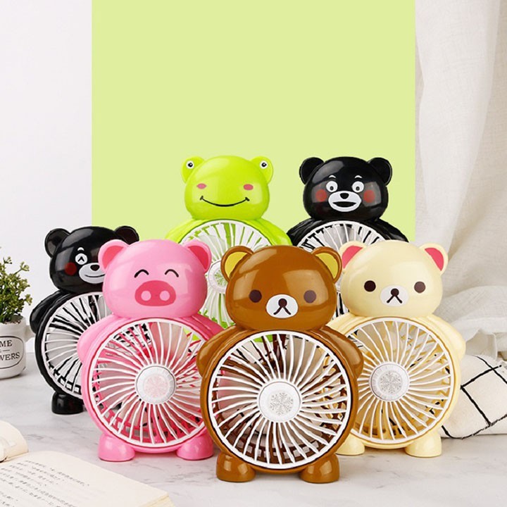 Quạt mini pin sạc 3 cánh hình thú đáng yêu🌺 Quạt Để Bàn Mini Hình Gấu Đen Giá Hạt Dẻ 🌺