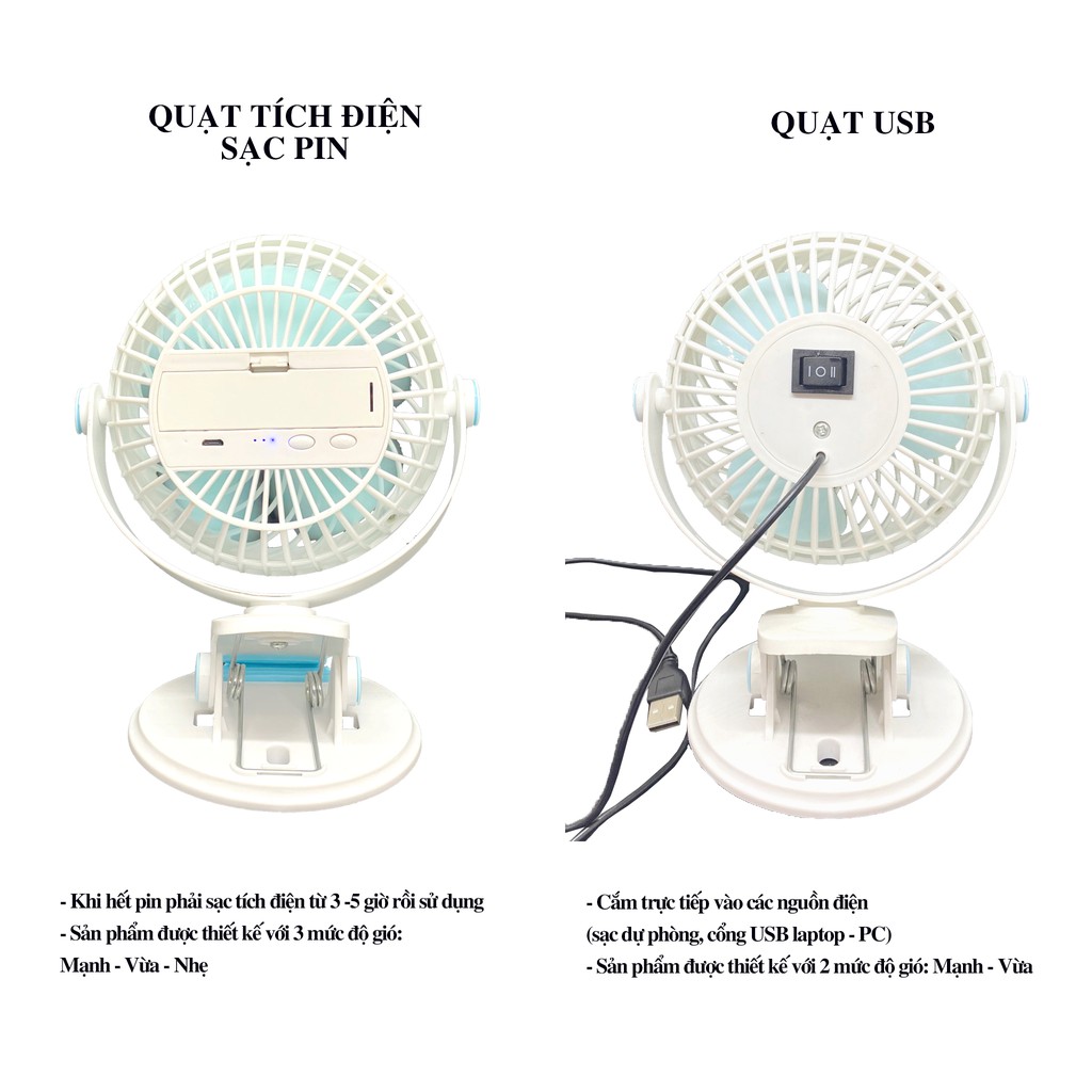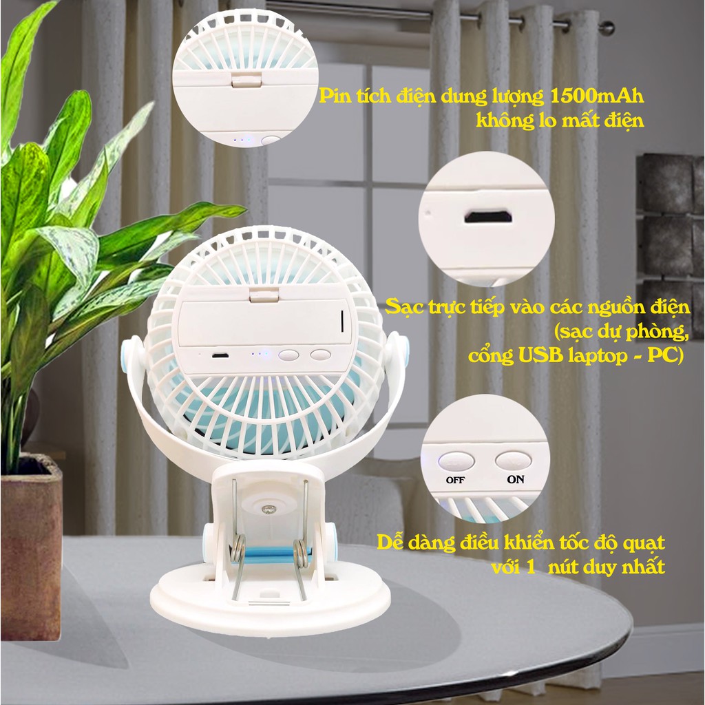 Quạt mini kẹp bàn loại TÍCH ĐIỆN SẠC PIN: