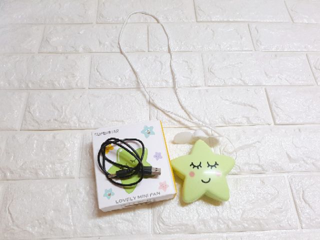 Quạt mini sạc pin cầm tay ngôi sao dễ thươngCó dây đeo tiện lợi, nhỏ gọn, sức quạt mạnh, dùng dây sạc