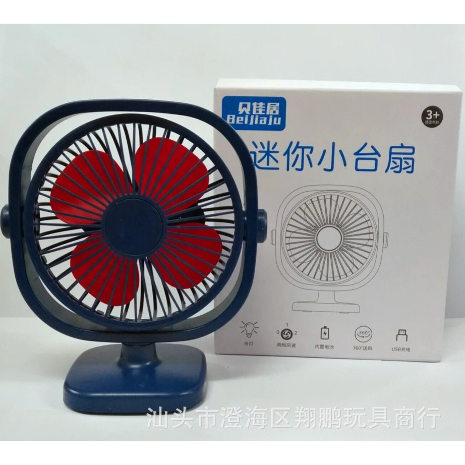 Quạt mini sạc USB tròn 360 độ -Cực mát, quạt sạc hình tròn 360- Chức năng: Sạc USB, có đèn, 2 tốc độ, cực mát