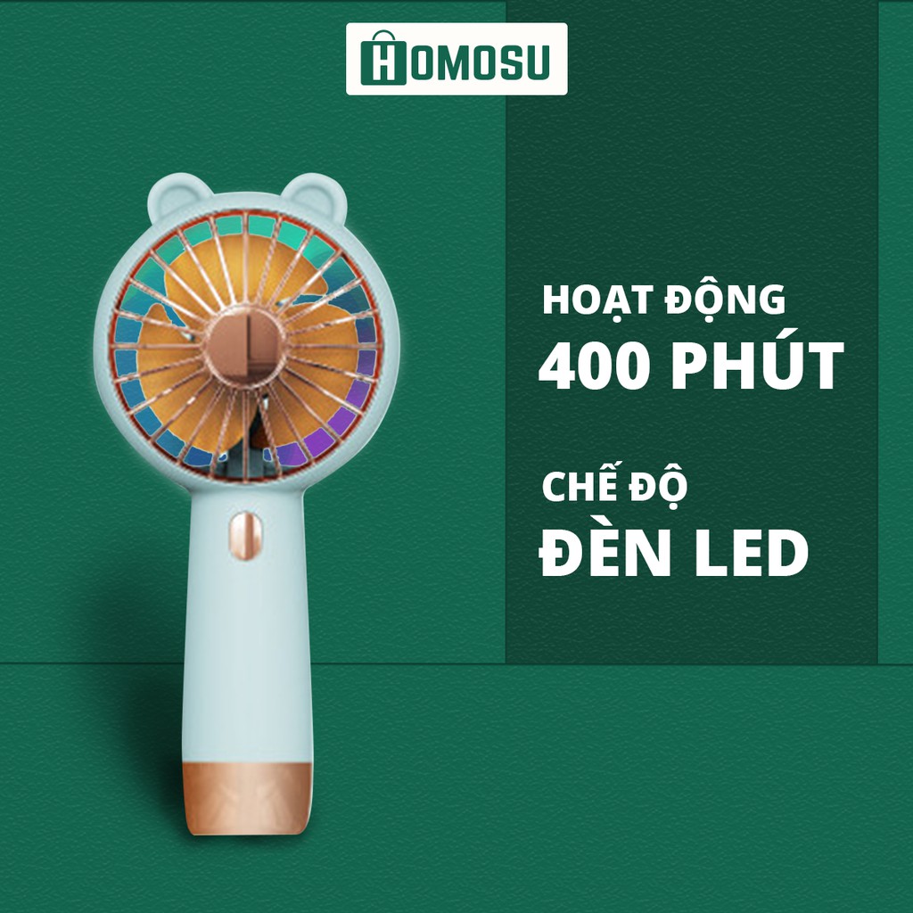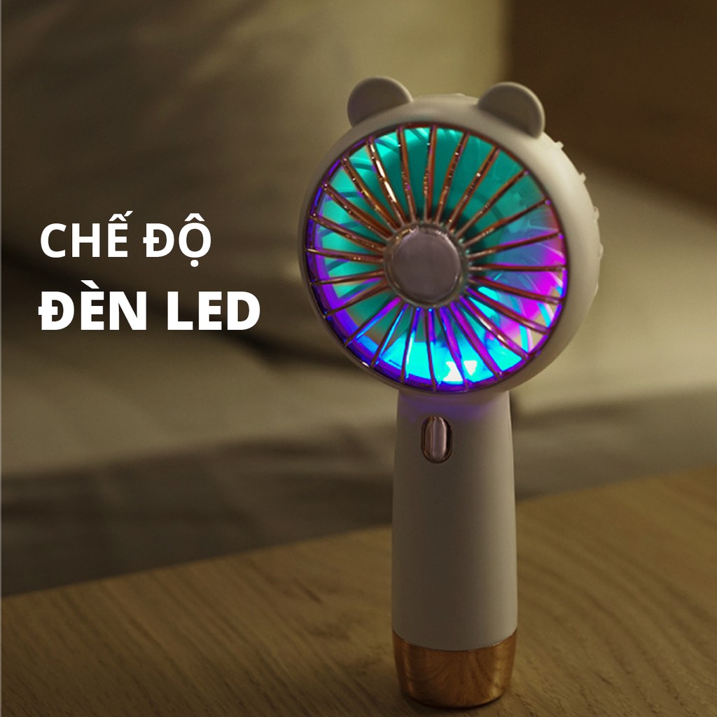 - Chiếc Quạt tích điện cầm tay/để bàn có đèn LED đa tiện ích.Một vật dụng đáng yêu dễ thương giúp bạn luôn cảm thấy mát mẻ suốt những ngày hè bức bối-Quạt Tích Điện Mini Cầm Tay/Để Bàn Tai Gấu Dễ Thương 3 Tốc Độ Gió Kèm Đèn LED vô cùng tiện lợi mang theo mọi lúc mọi nơi cần thiết, trở thành vật bất ly thân trong tiết trời nóng nực.