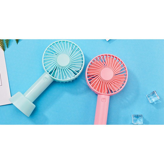 - Quạt được đi kèm 1 chân đế giúp trở thành 1 chiếc quạt để bàn học hoặc bàn văn phòng làm việc. Ngoài ra còn có 1 dây đeo giúp b mang theo quạt mini đi bên minh