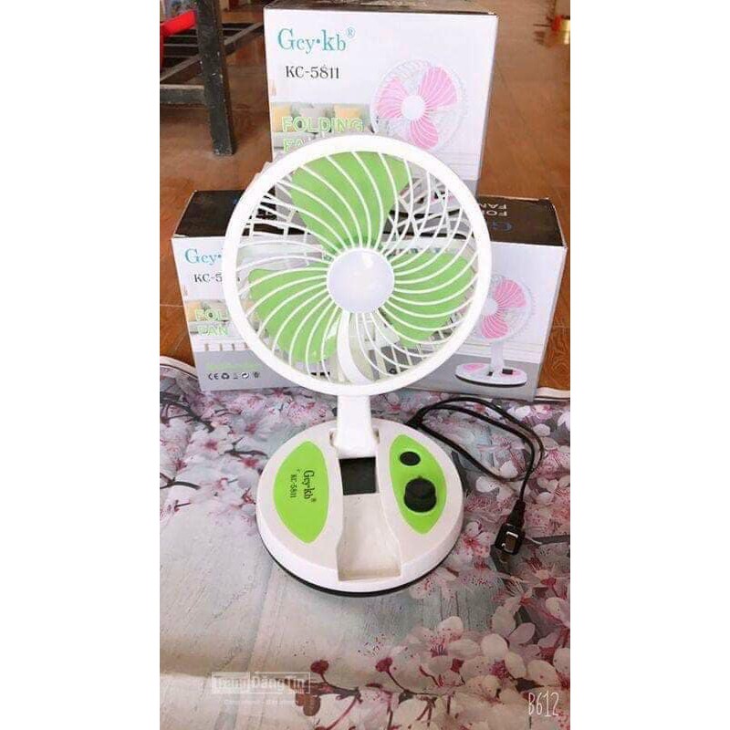 Quạt mini tích điện để bàn gấp gọn tiện dụng 3 cấp độ thời gian sử dụng tới 4 giờ Quạt mini sạc điện có đèn LED KC5811