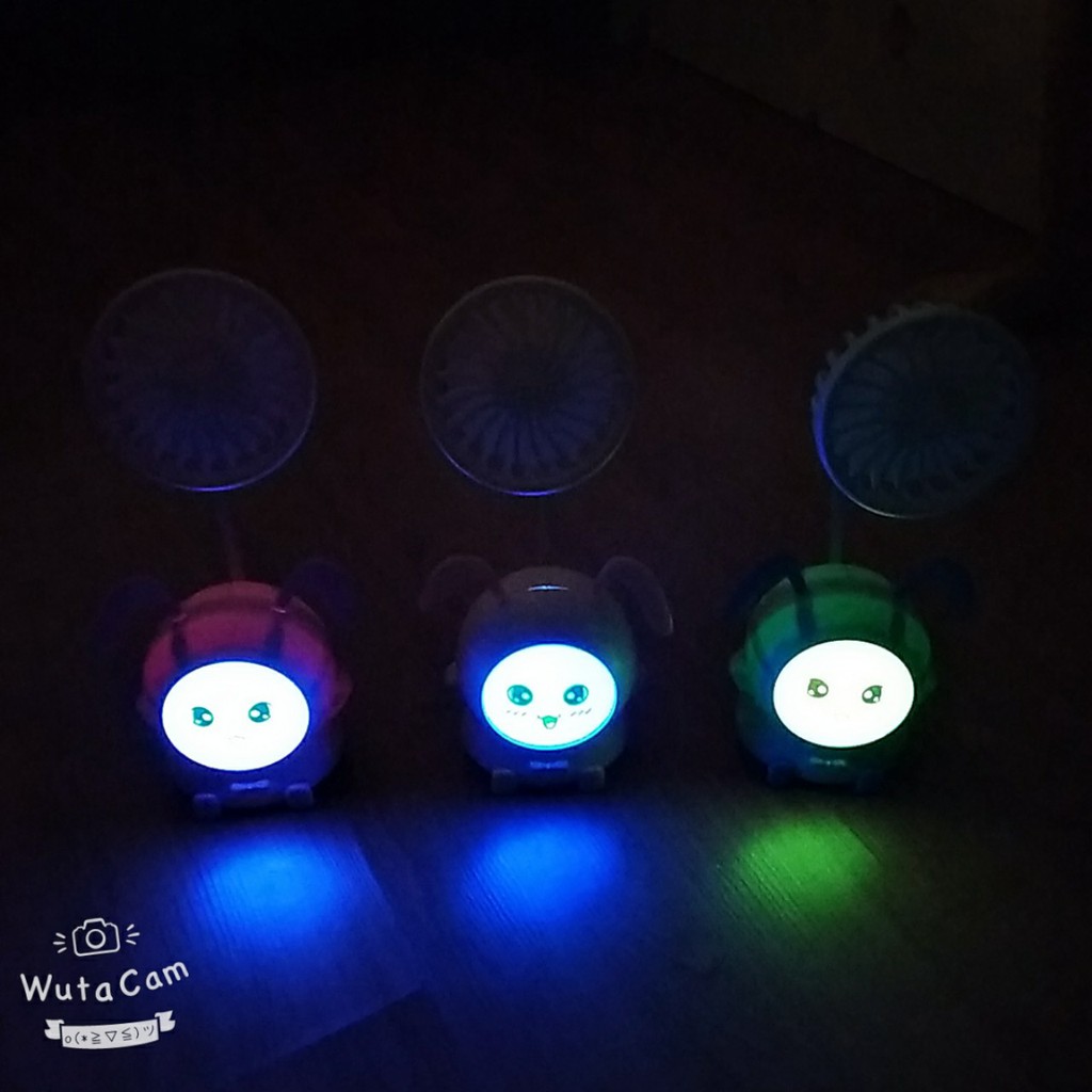 Giới thiệu Quạt Mini Tích Điện Để Bàn Tiện Lợi Đèn Nháy 3 Mầu , Quạt Mạnh Hình Thú Dễ Thương