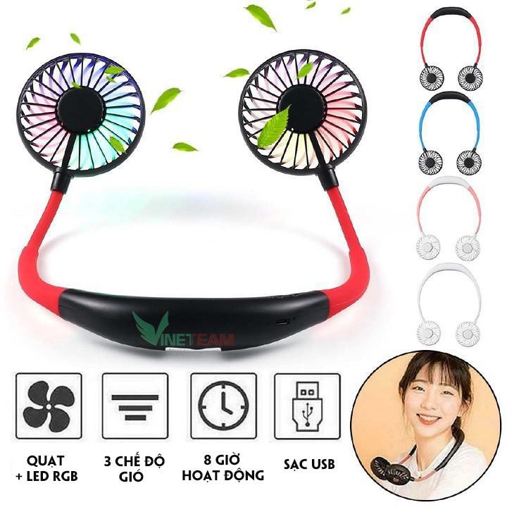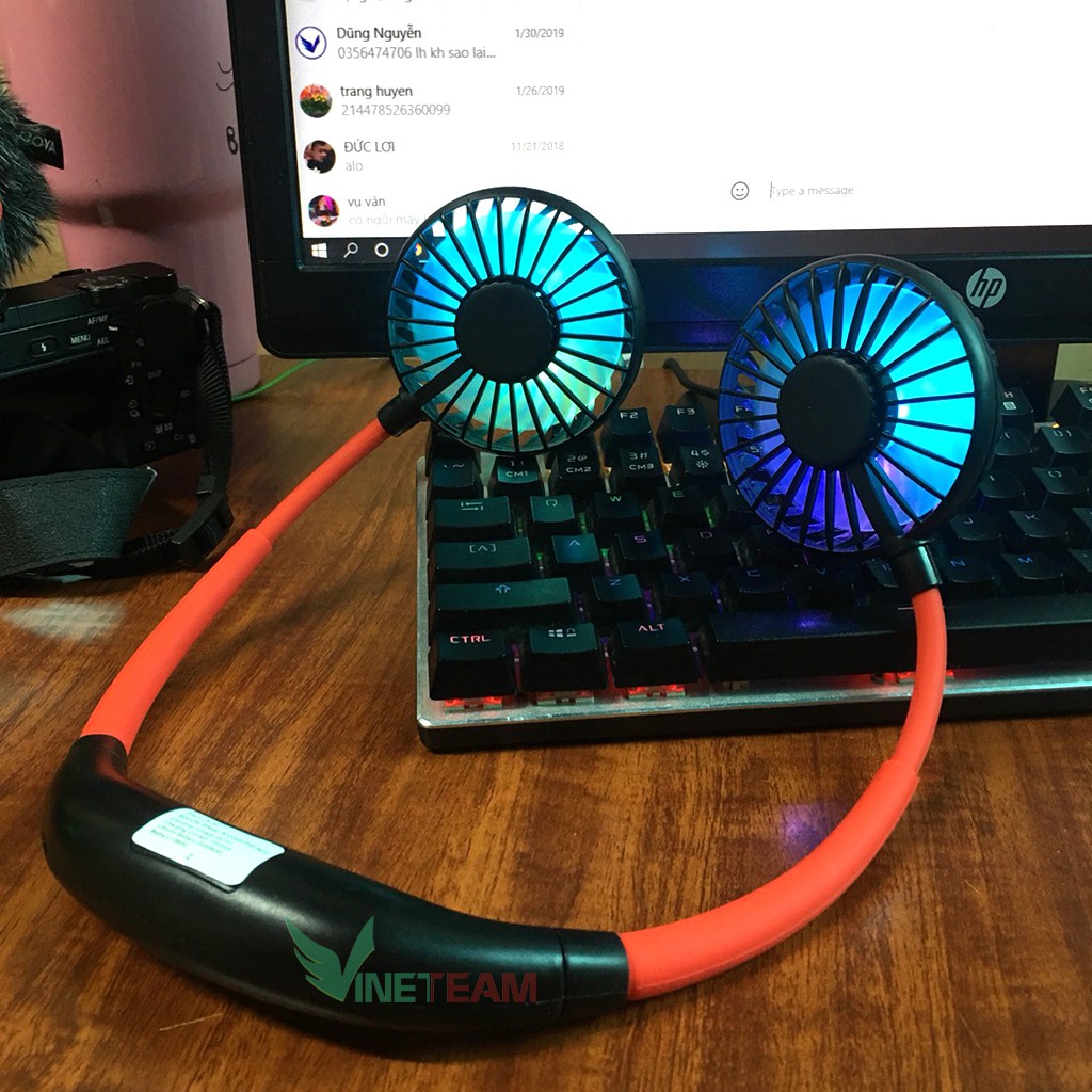 Quạt mini tích điện✔Quạt Mini Đeo Cổ Tiện Lợi Cao Cấp Có Đèn LED đổi màu ✔Có 3 chế độ gió✔Mẫu hot nhất 2020 -dc4138