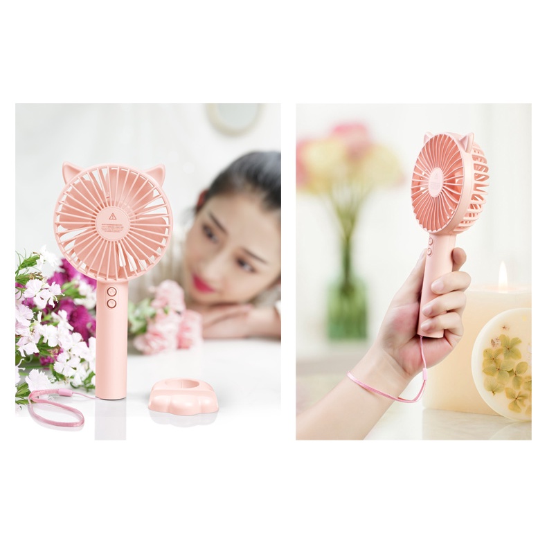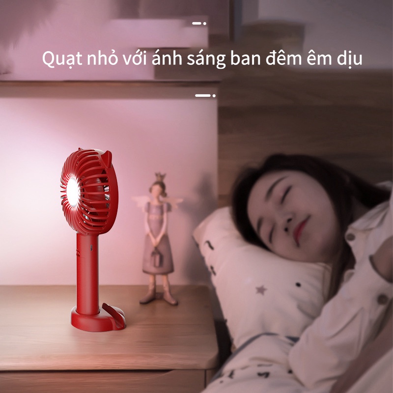 Quạt mini tích hợp đèn ngủ và giá đỡ điện thoại, Quạt nhỏ cầm tay đểbàn tiện dùng nhiều cấp độ gió