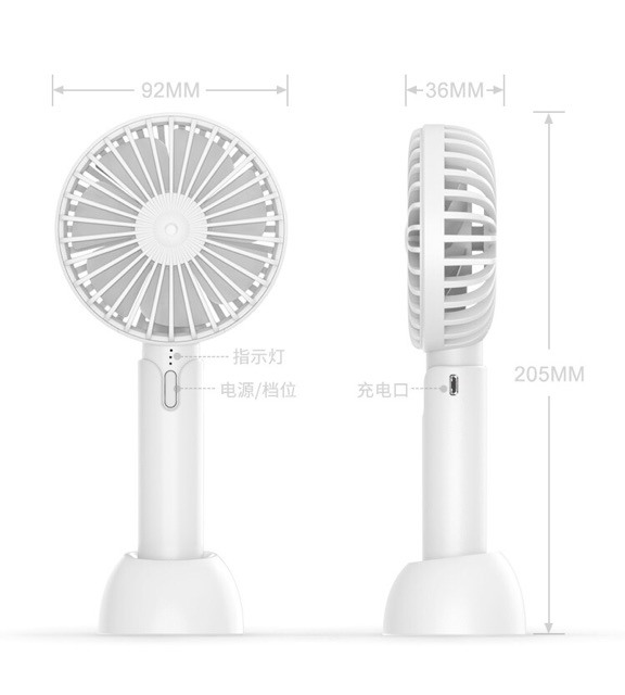 - Bộ sản phẩm gồm: Quạt + dock cắm quạt + dây sạc + hộp đựng bàng giấy