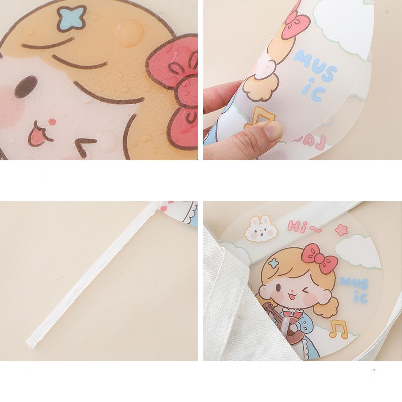 Quạt Nhựa Cầm Tay Cán Dài Hoạt Hình Cute Pets