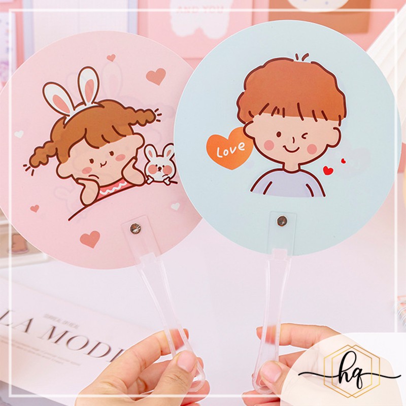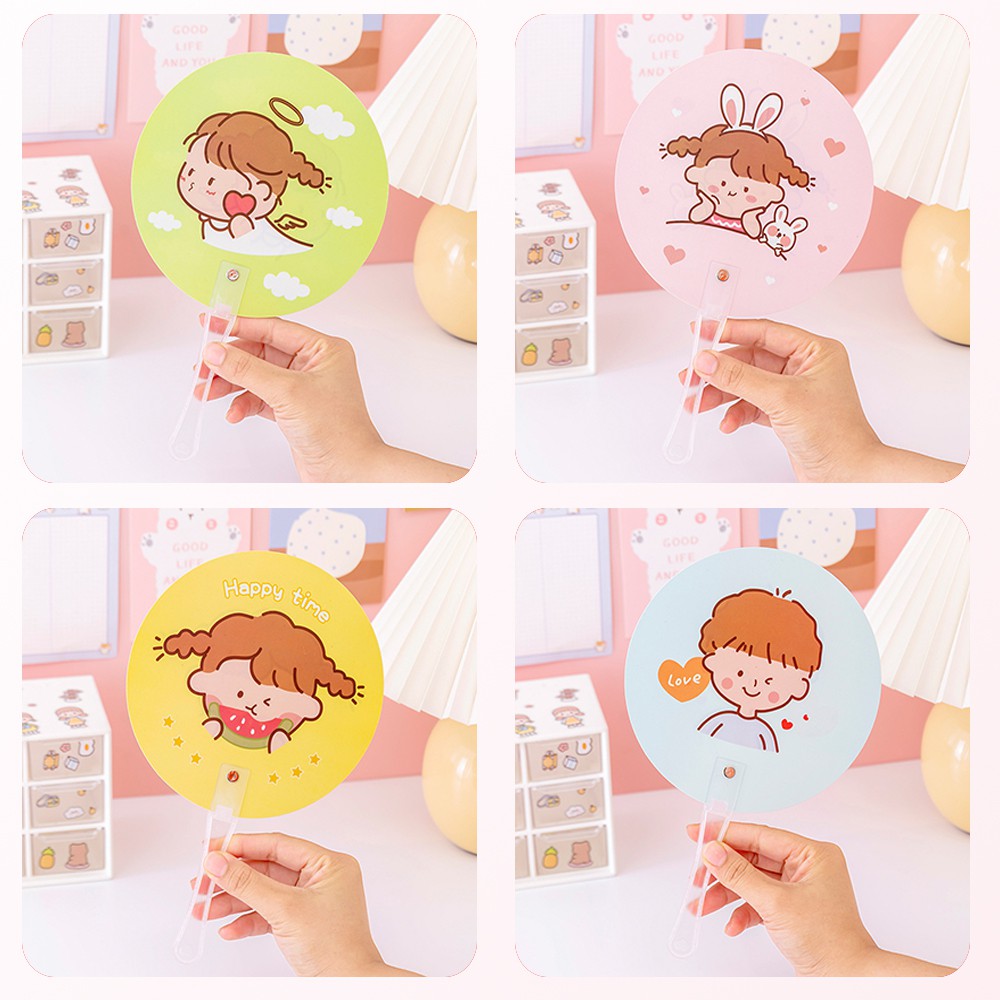 Quạt nhựa cầm tay mini hình tròn loại đẹp nhiều họa tiết phong cách Hàn Quốc du lịch đi học đi chơi