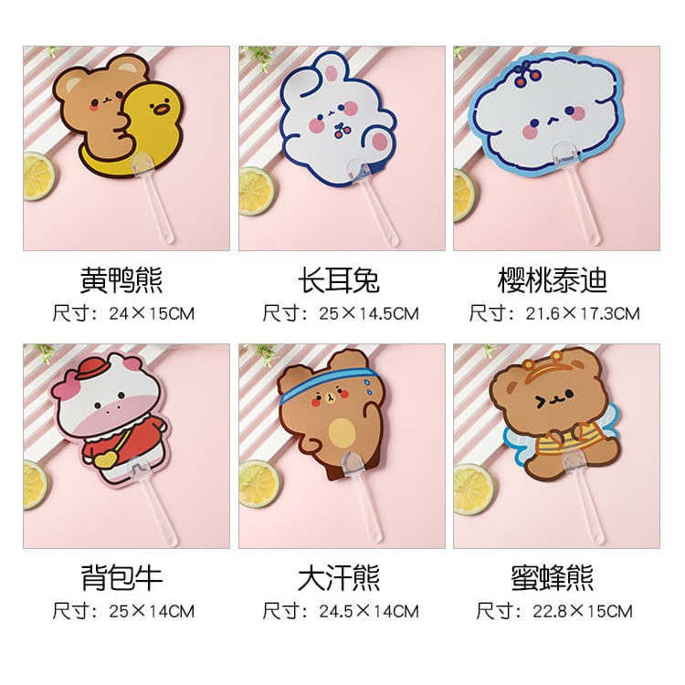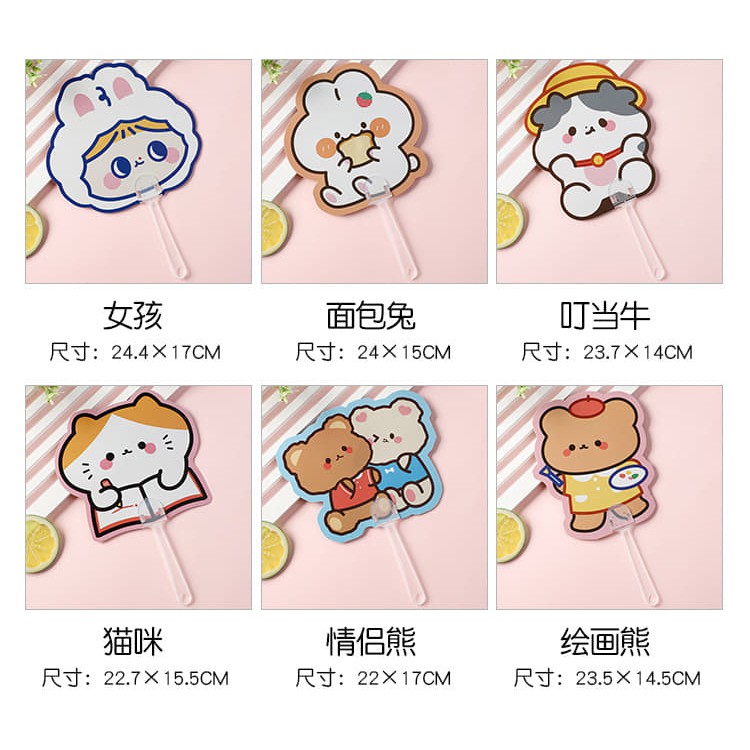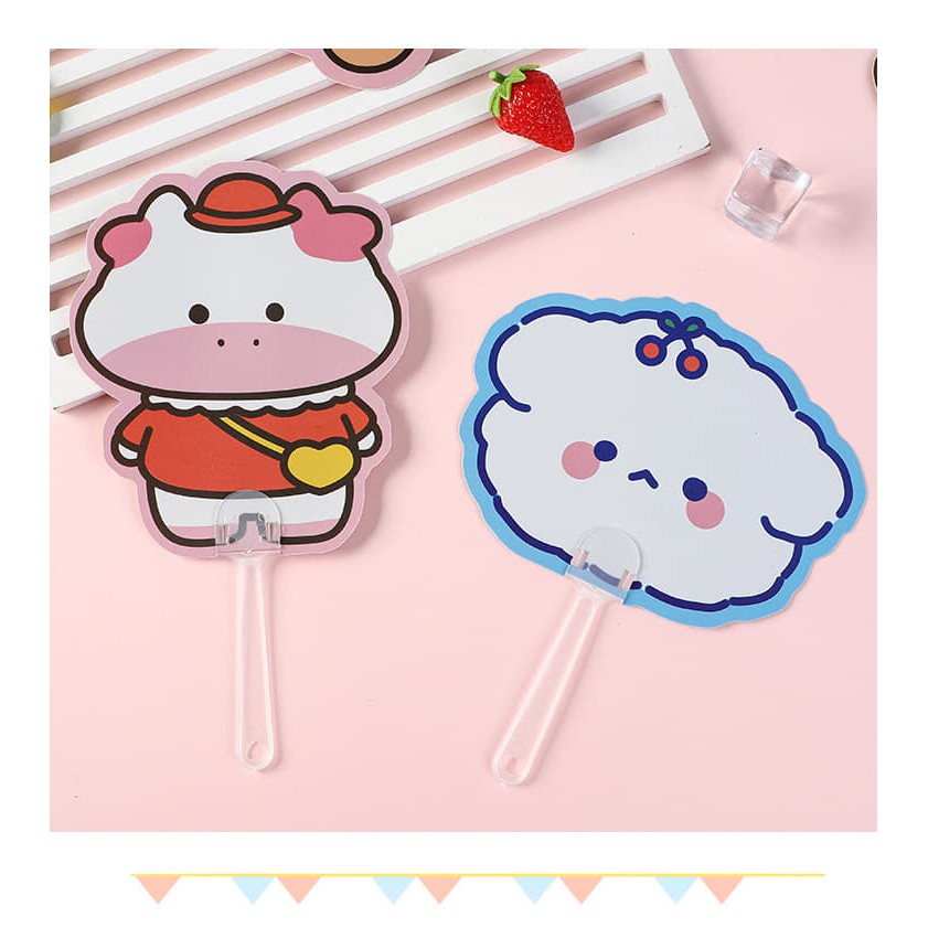 Quạt nhựa cầm tay hoạt hình dễ thương /Quạt tròn cầm tay cute• Là một trong những loại quạt nhựa đang được các bạn trẻ rất ưa chuộng. Những chiếc quạt được thiết kế theo hình thú, trái cây siêu dễ thương tạo ra trào lưu mới trong giới trẻ năm nay.