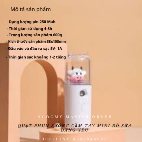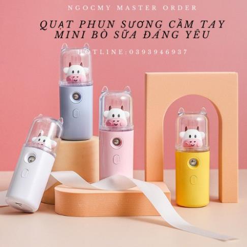 Quạt Phun Sương Cầm Tay MiNi Hình Bò Sữa - Tích Điện Phun Sương Hơi Nước Tạo Ẩm (Hot)