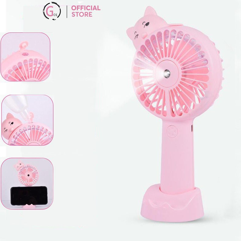Quạt phun sương cầm tay mini dành cho văn phòng tích điện G01 3 tốc độ gió tặng bình đựng nước dùng tình dầu