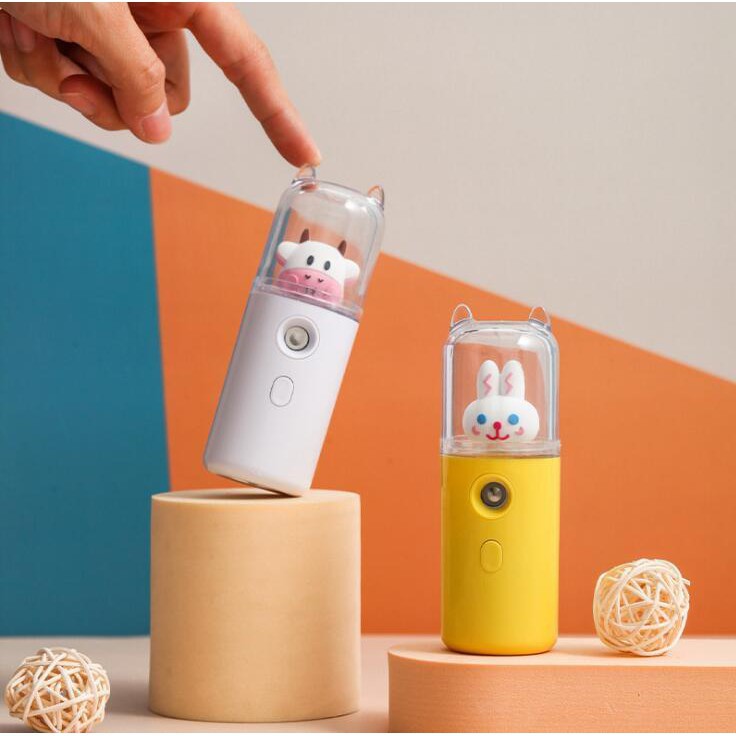 Quạt Phun Sương Cầm Tay MiNi Hình Bò Sữa - Tích Điện Phun Sương Hơi Nước Tạo Ẩm (Hot)