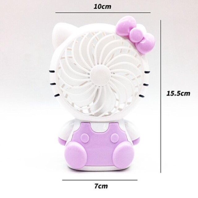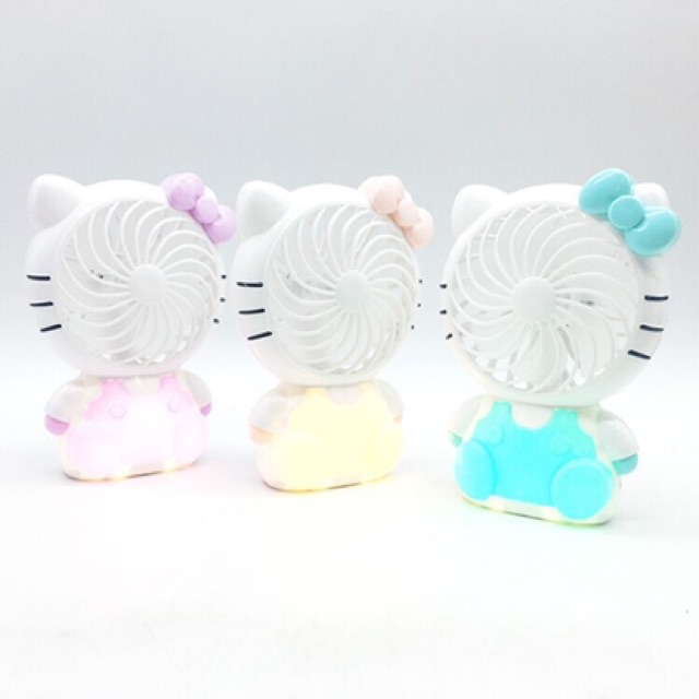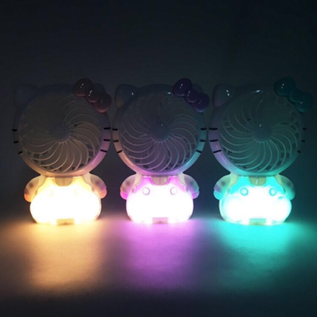 Quạt Pin Mini Cầm Tay Hello Kitty Ngồi 1 mức quạt + 1 mức đèn