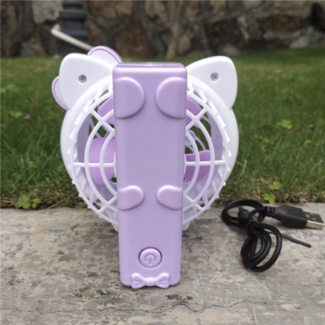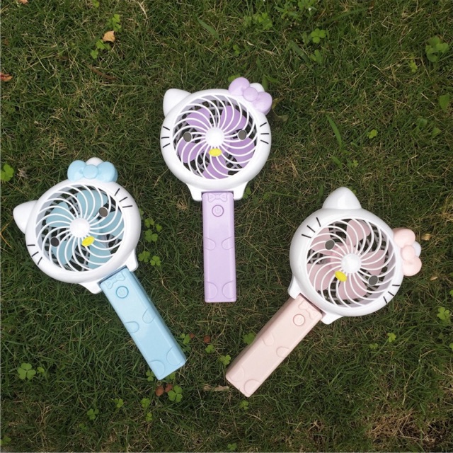 Quạt Pin Mini Cầm Tay Hello Kitty Màu Hồng 1 mưc mát + đèn