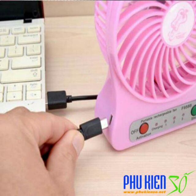 - Quạt được trang bị 1 pin sạc dung lượng 3.7V có thể hoạt động liên tục trong nhiều giờ liền, khi hết pin có thể sạc lại dễ dàng thông qua cổng USB của máy tính.