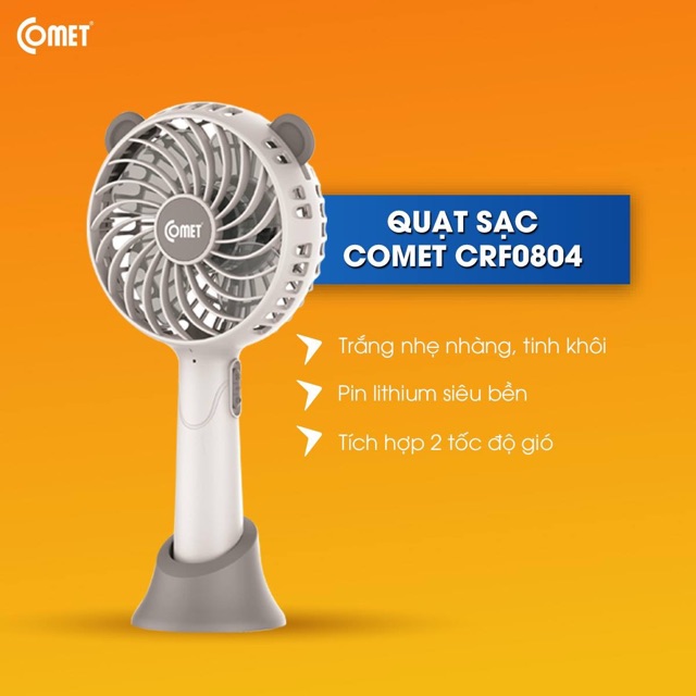 Giới thiệu Quạt sạc cầm tay Comet CRF0804 sạc USB