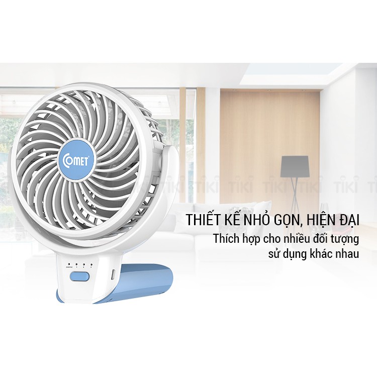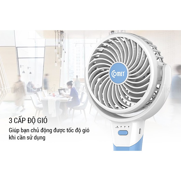 Quạt sạc cầm tay Comet CRF0904 sạc USBThông tin sản phẩm Quạt sạc cầm tay Comet CRF0904 sạc USB