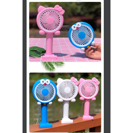 - Quạt cầm tay hình doremon vs hello kitty thuộc dạng quạt sạc nên được trang bị pin sạc bên trong, các bạn có thể sạc điện cho quạt như cách sạc Điện Thoại Di Động nha.