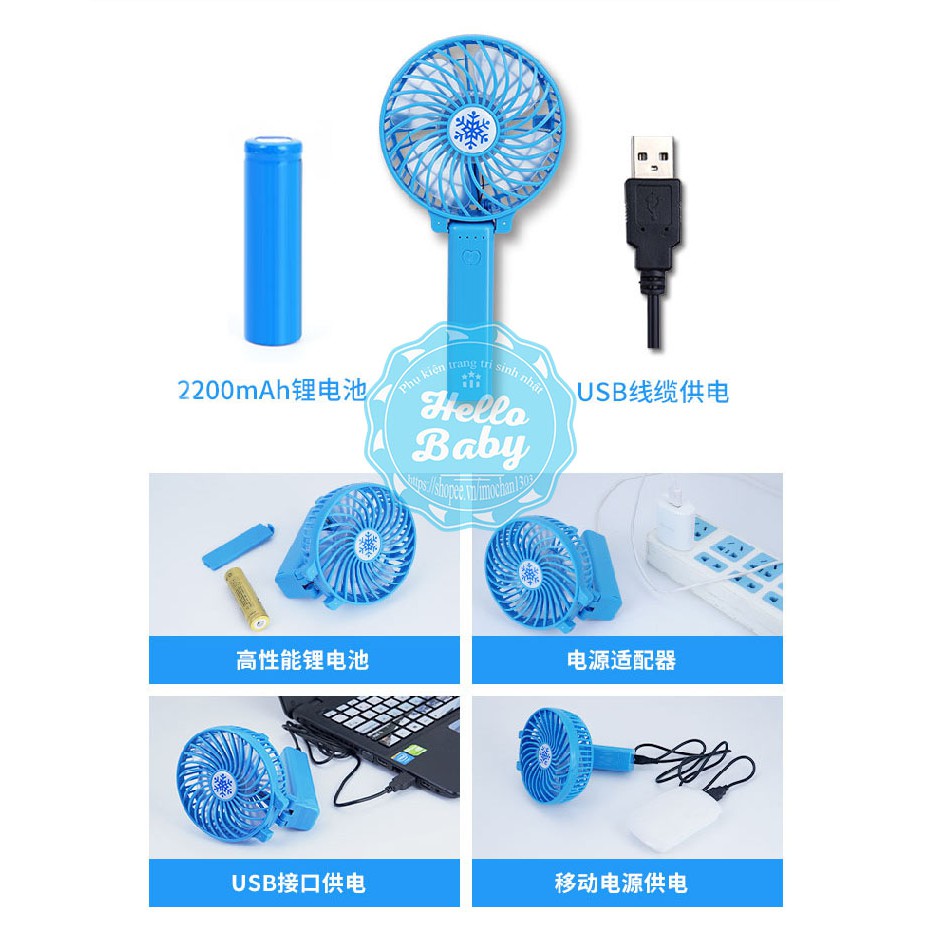 Giới thiệu Quạt sạc cầm tay mini, gập 180* để bàn