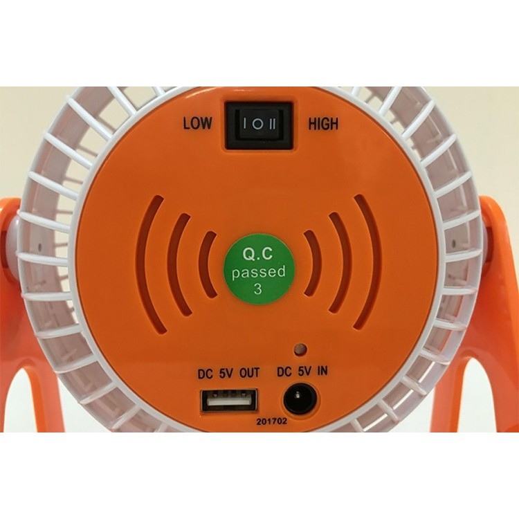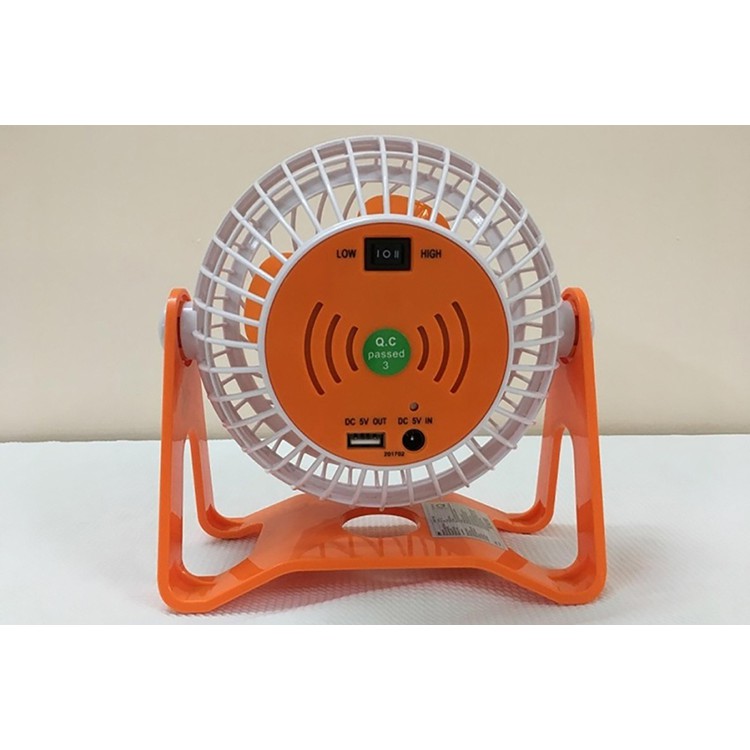 - Quạt có cổng sạc bằng đầu USB, nên khi dùng hết pin của Quạt, chúng ta sẽ dễ sạc lại cho Quạt bằng cách cắm cổng sạc USB vào máy tính, vào laptop hoặc sạc bằng cục sạc dự phòng. Hoặc đơn giản muốn sạc bằng điện trực tiếp cho Quạt, chúng ta có thể lấy cục sạc điện thoại iPhone, Samsung tháo rời cục cốc sạc ra, nối vào cổng USB của quạt, là có thể cắm sạc trực tiếp vào nguồn điện.