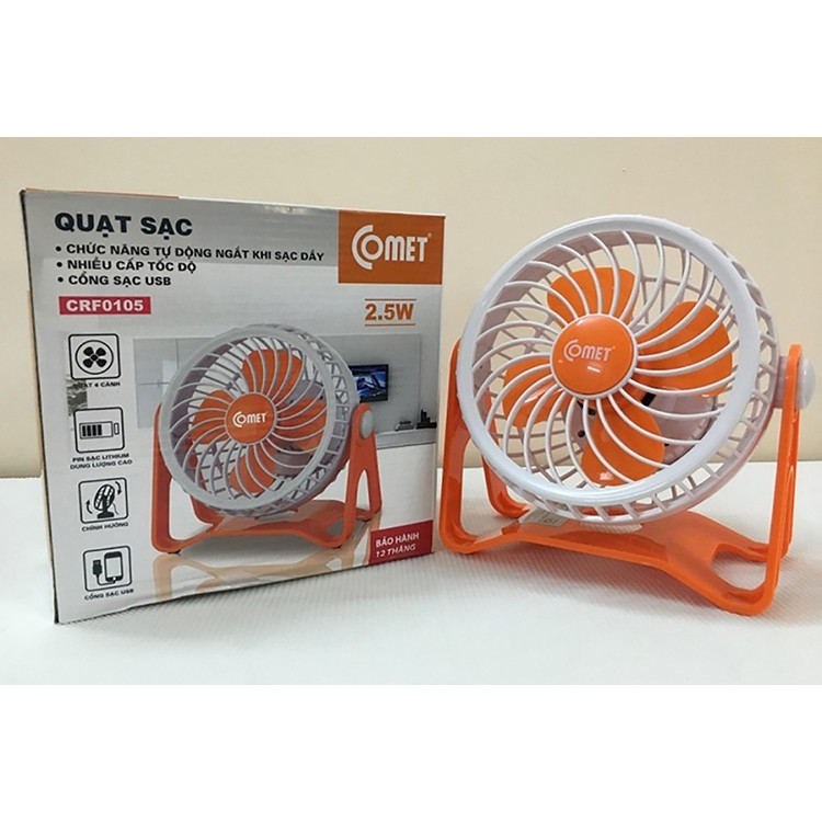 Giới thiệu [Mã BMBAU50 giảm 7% đơn 99K] Quạt sạc Comet CRF0105 2.5W để bàn, có cổng sạc USB