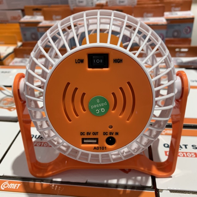 - Đặc biệt: Quạt sạc mini COMET CRF0105 còn có chức năng như cục sạc dự phòng cho điện thoại, khi điện thoại của bạn hết pin. Bạn có thể dùng dây sạc của điện thoại cắm vào quạt để sạc chữa cháy cho điện thoại của mình, giúp chúng ta không bị mất liên lạc trong thời gian chờ tìm nguồn điện sạc cho dế yêu.