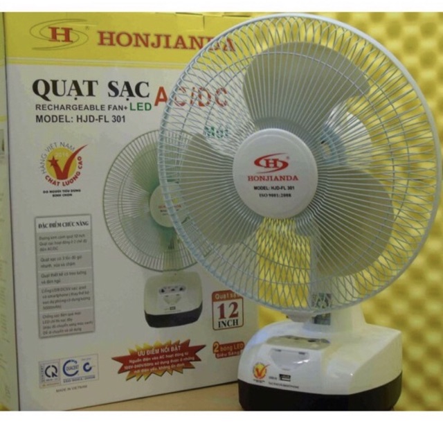Mô tả sản phẩm Quạt Sạc Kiêm Đèn sạc Honjianda HJD - FL 301LED (trắng)