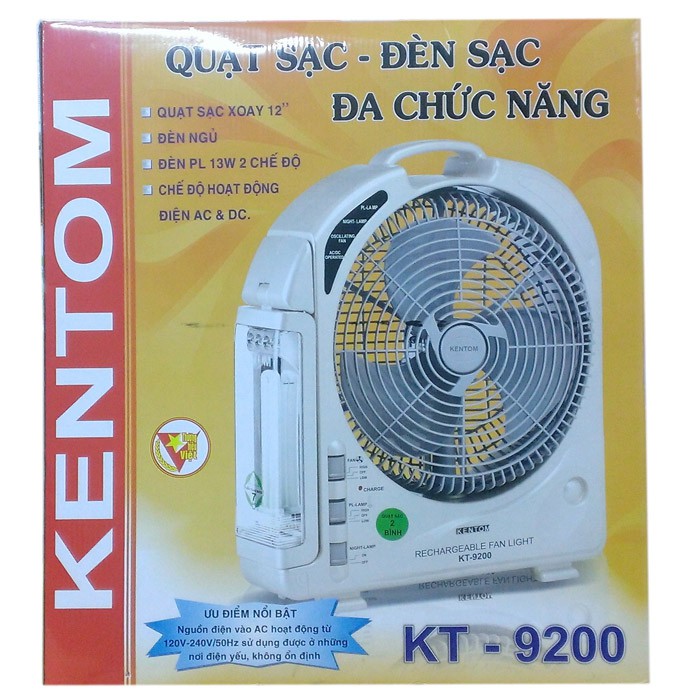 Giới thiệu Quạt sạc điện kết hợp đèn Kentom KT-9200 - 2 Bình