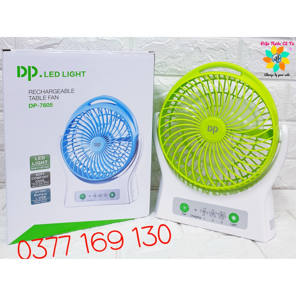 Quạt sạc DP7605 kèm đèn LEDQUẠT ĐÈN LED 3 CHỨC NĂNG DP-7605 THẾ HỆ MỚI.