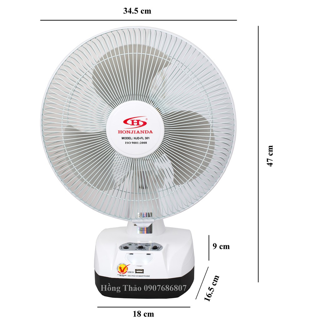 [Mã ELHA22 giảm 6% đơn 300K] Quạt sạc HJD FL 301 LED 2 bình Honjianda