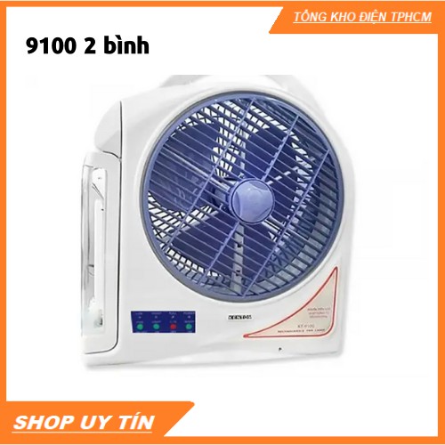 Quạt sạc Kentom KT9100 loại 2 bình màu trắng xanh