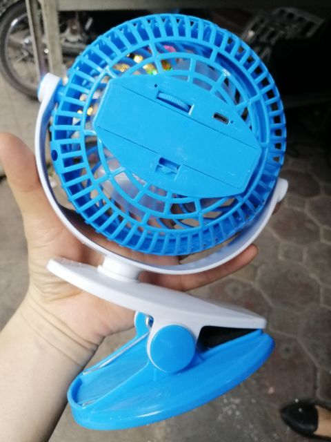 Là loại quạt mini dùng bằng pin sạc.Thiết kế đế kẹp rất tiện khi sử dụng. Một lần sạc sử dụng tới 60 - 90'. Tuy thuộc vào thời gian sử dụng.