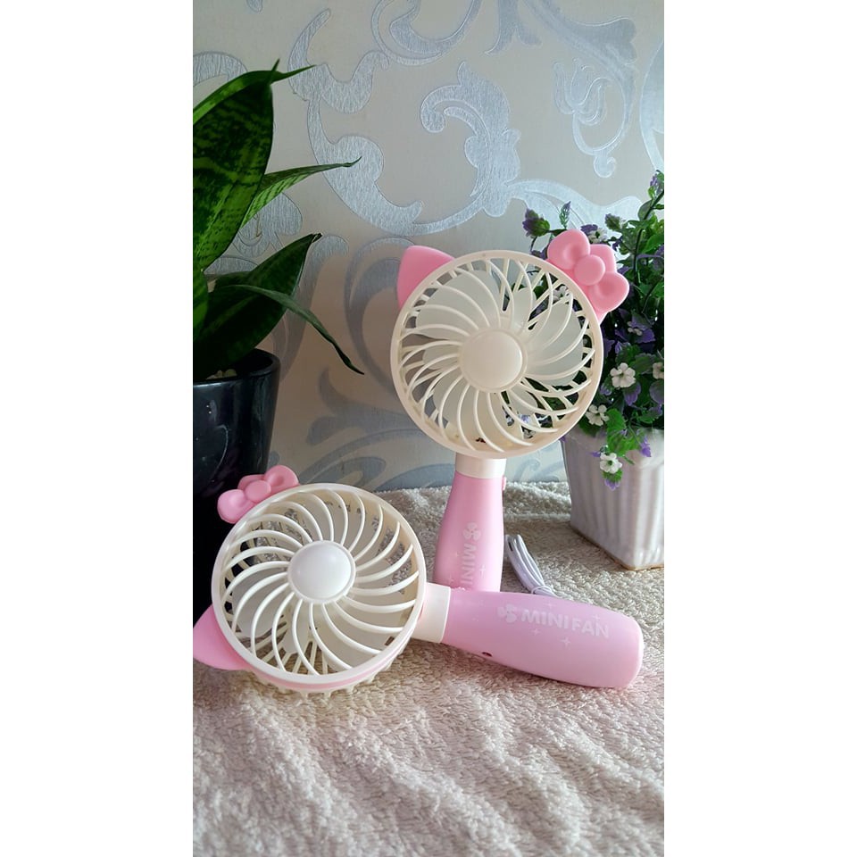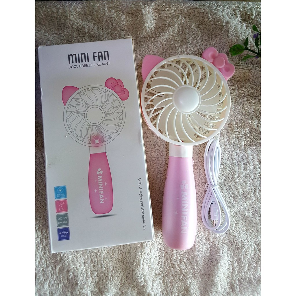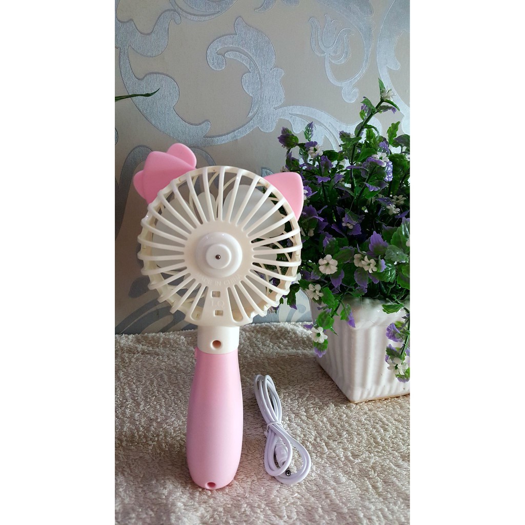 Quạt Sạc Mini Cầm Tay Hình Mèo Mèo kitty Có đèn, Quạt Tích Điện Mini Fan