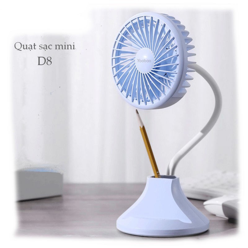 Quạt sạc mini USB 2000mAh YOOBAO D8 đa chức năng, đèn học, hôp đựng bút, khay đặt điện thoại, thân mềm xoay 360*