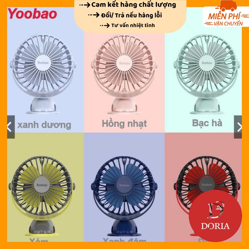 QUẠT SẠC MINI YOOBAO 🎁FREESHIP 50K🎁QUẠT Yoobao 6400MAH xoay góc 720 độ,32 tiếng, đế kẹp đa năng DR888I: Chính sách bảo hành quạt tích điện yoobao