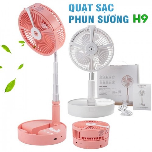 Quạt sạc phun sương để bàn có đèn gấp gọn đa năng H9