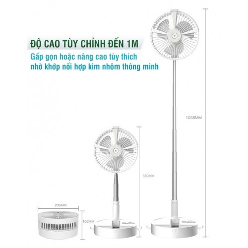 Giới thiệu Quạt sạc phun sương để bàn có đèn gấp gọn đa năng H9