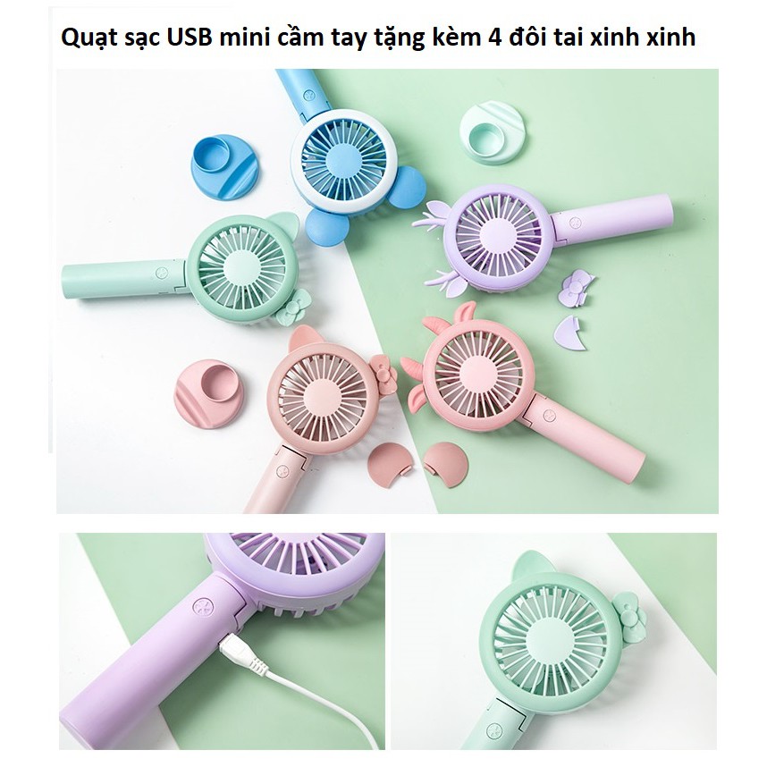 Quạt sạc pin USB mini cầm tay tặng kèm 4 đôi tai xinh xinh
