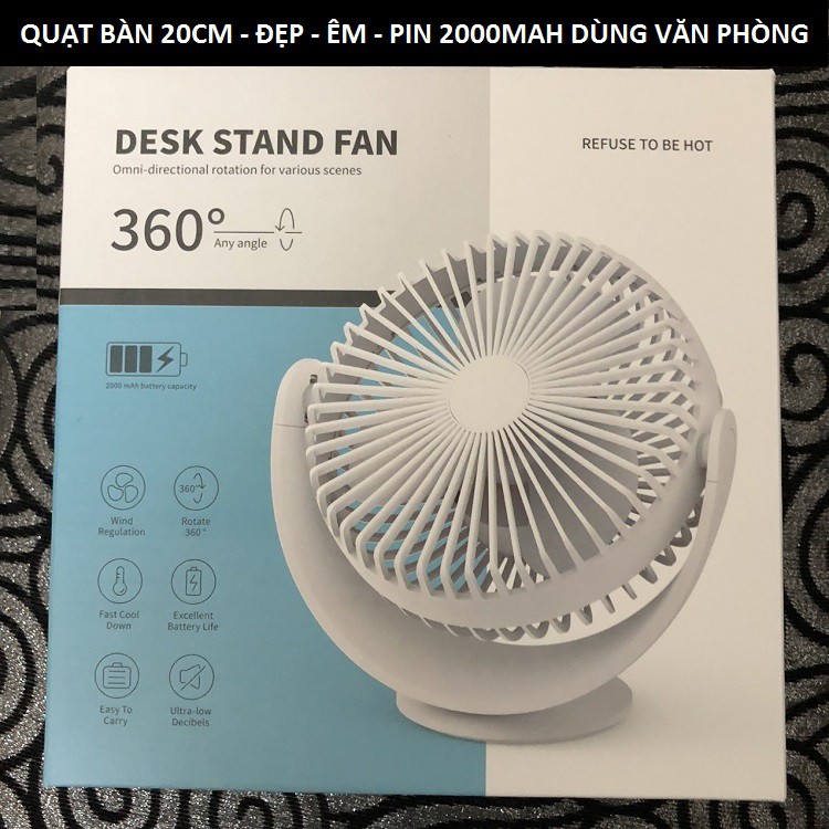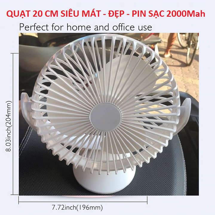 Quạt Model Mới Nhất 2020 Quạt Để Bàn 20cm Siêu Đẹp, Êm, Sịn Xò Để Bàn Làm Việc Văn Phòng - Cắm Được Trực Tiếp Vào Cổng USB Máy Tính Laptop Cỏ Sạc Điện Thoại - Quạt Sạc Pin 2000 mAh - Xoay 360 Độ -Ảnh Thật Bảo Hành 3 ThángChế độ bảo hành, đổi trả sản phẩm.