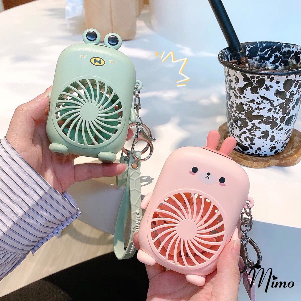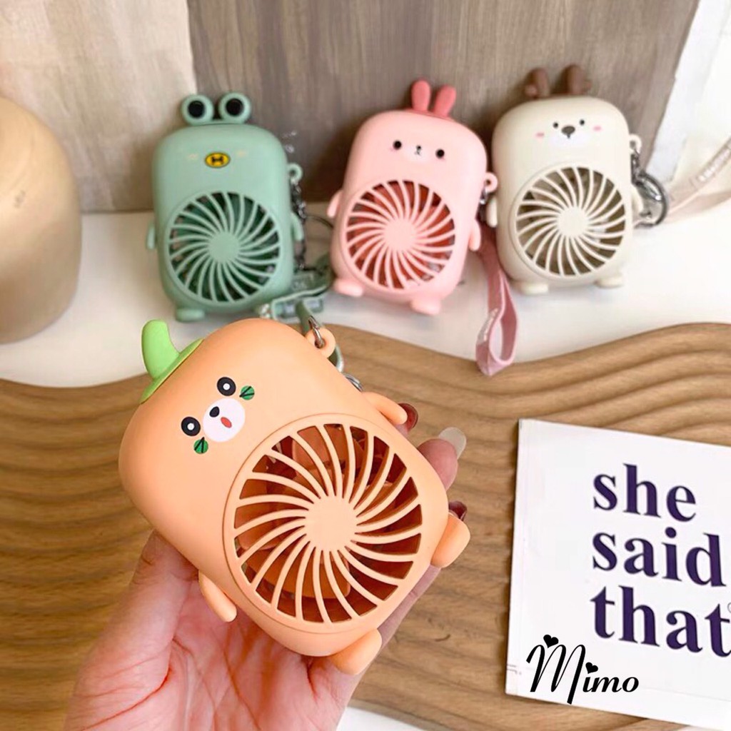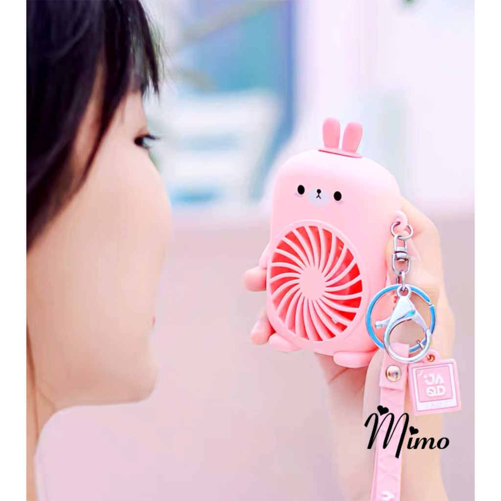 Quạt sạc tích điện cầm tay gió mạnh có đế để bàn hình thú ngộ nghĩnh với dây làm móc khóa cực xinh kèm dây sạc