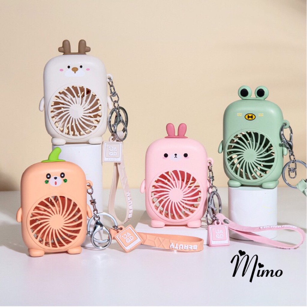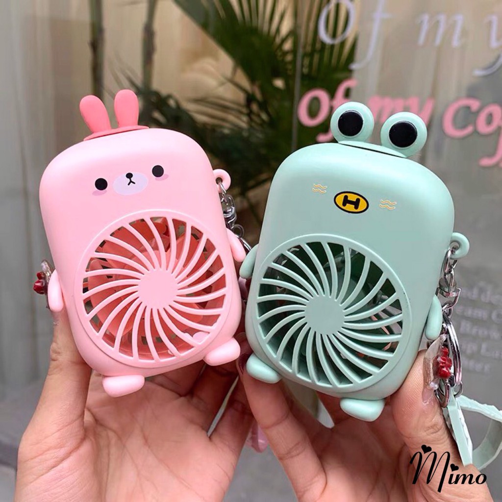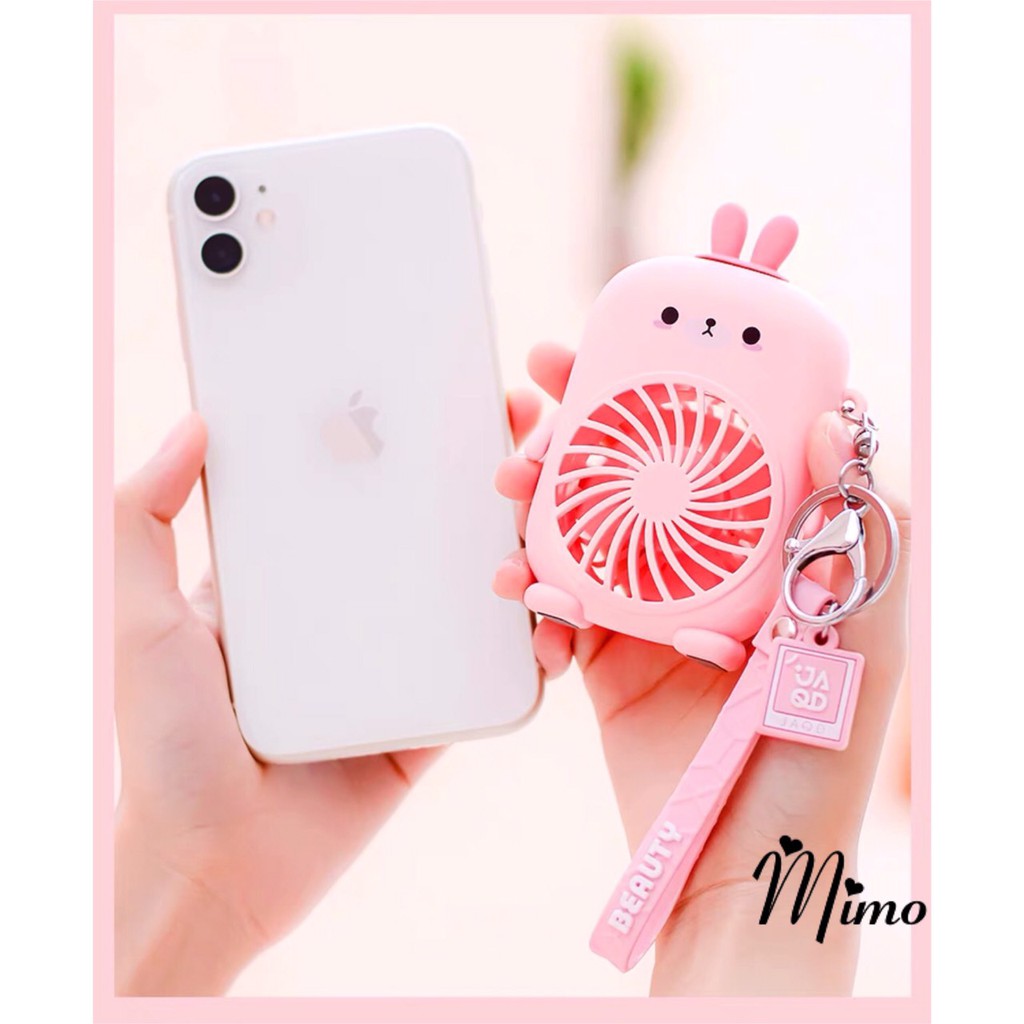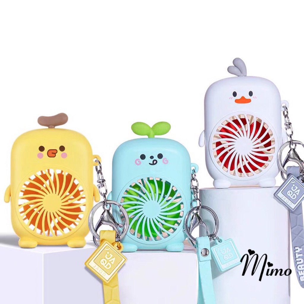 Quạt sạc tích điện cầm tay gió mạnh có đế để bàn hình thú ngộ nghĩnh với dây làm móc khóa cực xinh kèm dây sạc