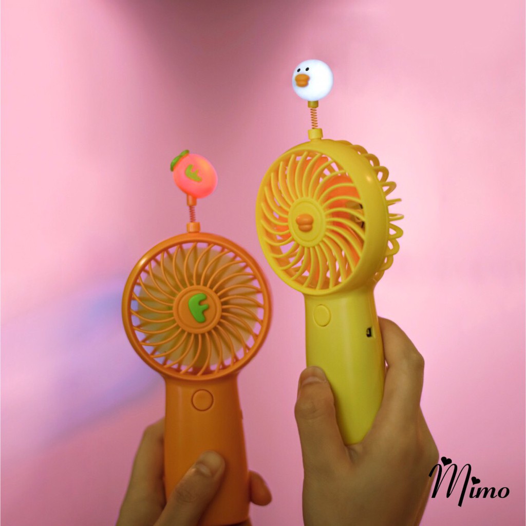 Quạt sạc tích điện Cầm Tay Sạc Pin hình thú ngộ nghĩnh kèm lò xo đèn phát sáng Siêu Dễ Thương