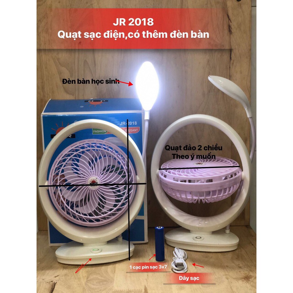 Giới thiệu Quạt Sạc Tích Điện Có Đèn Led Để Bàn 2 Trong 1 JR-2018 Mẫu Mới