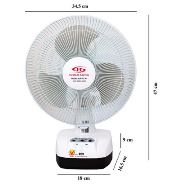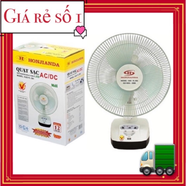 Giới thiệu Quạt sạc tích điện Honjianda 2 bình FL 301, có đèn led và cổng sạc USB