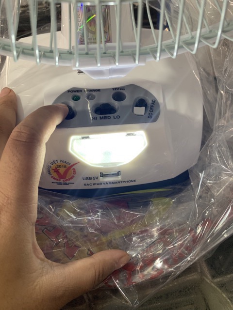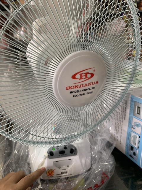 Quạt sạc tích điện Honjianda 2 bình FL 301, có đèn led và cổng sạc USB