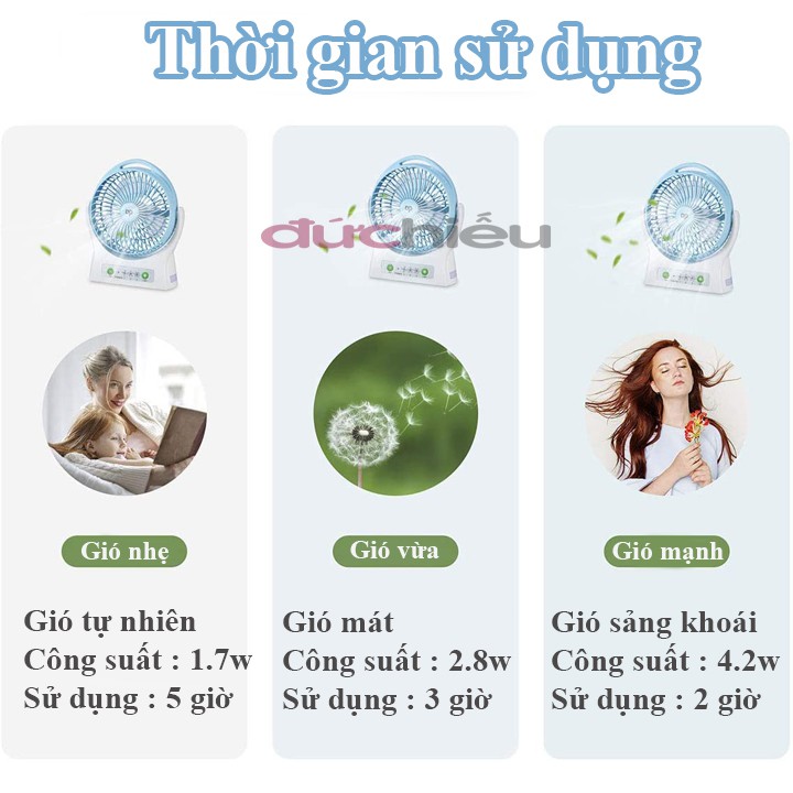 🔸🔸🔸Quạt sạc tích điện loại to có đèn LED DP🔸🔸🔸Ưu điểm :