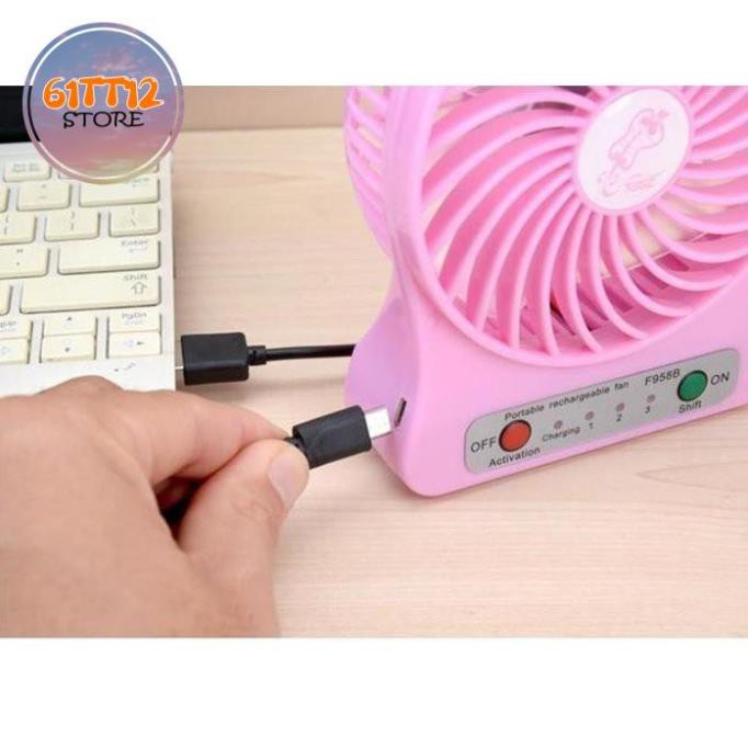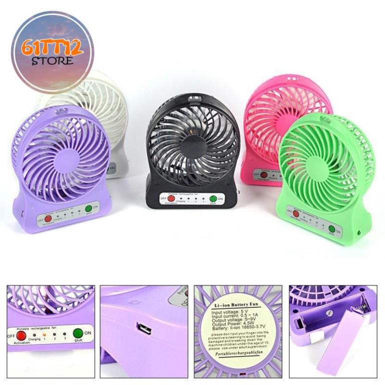 quạt được trang bị 1 pin sạc dung lượng 3.7v có thể hoạt động liên tục trong nhiều giờ liền, khi hết pin có thể sạc lại dễ dàng thông qua cổng usb của máy tính.
