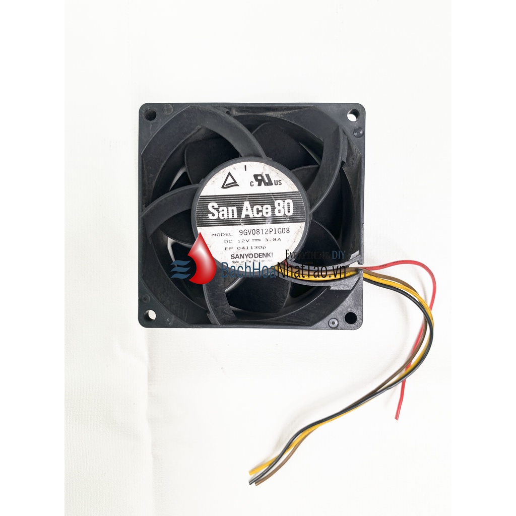 Quạt San Ace 80 8cmx8cm 12v tháo máy cũQuạt hút thổi mạnh